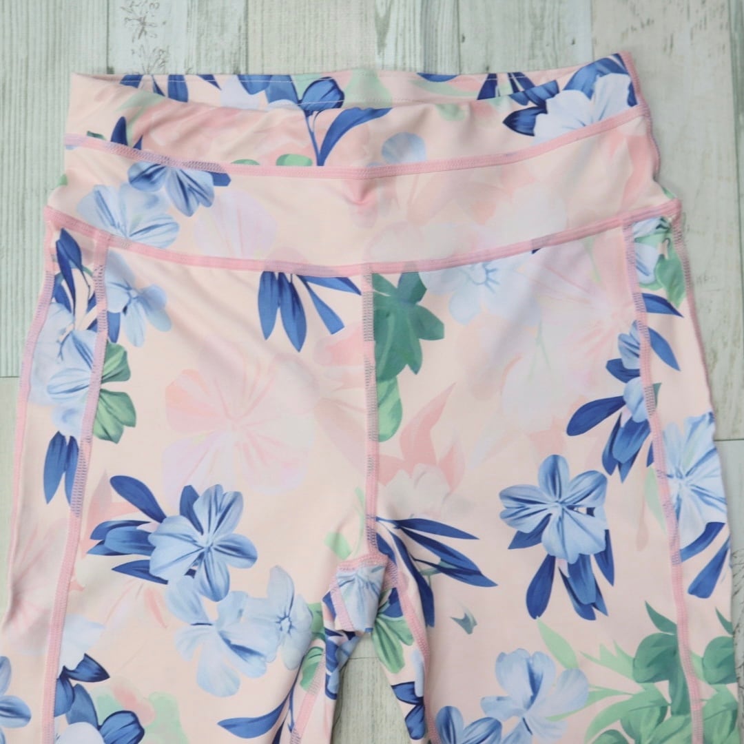 ピンクとブルーの花プリントがフェミニンでさわやかな印象のウェアです。